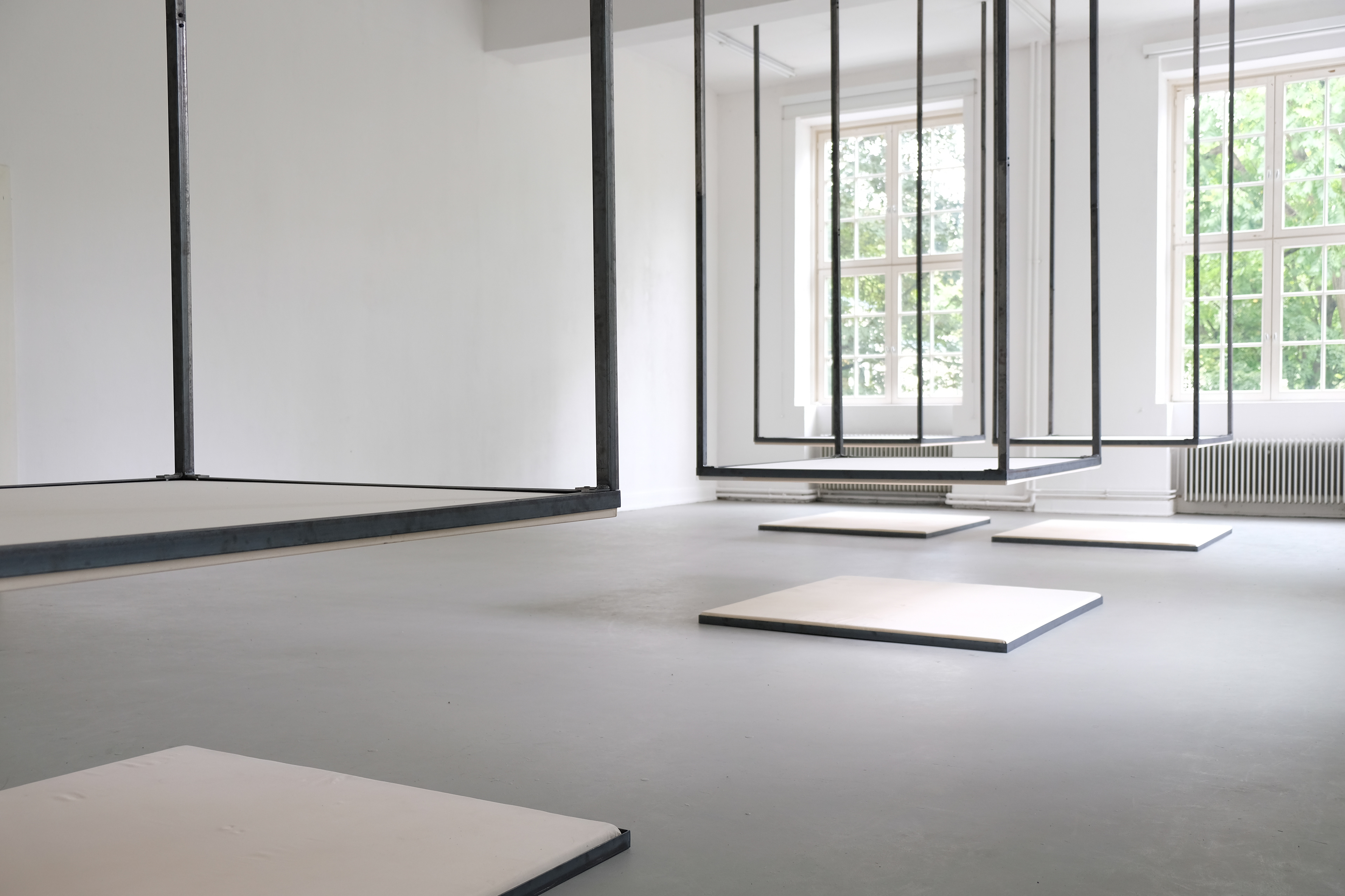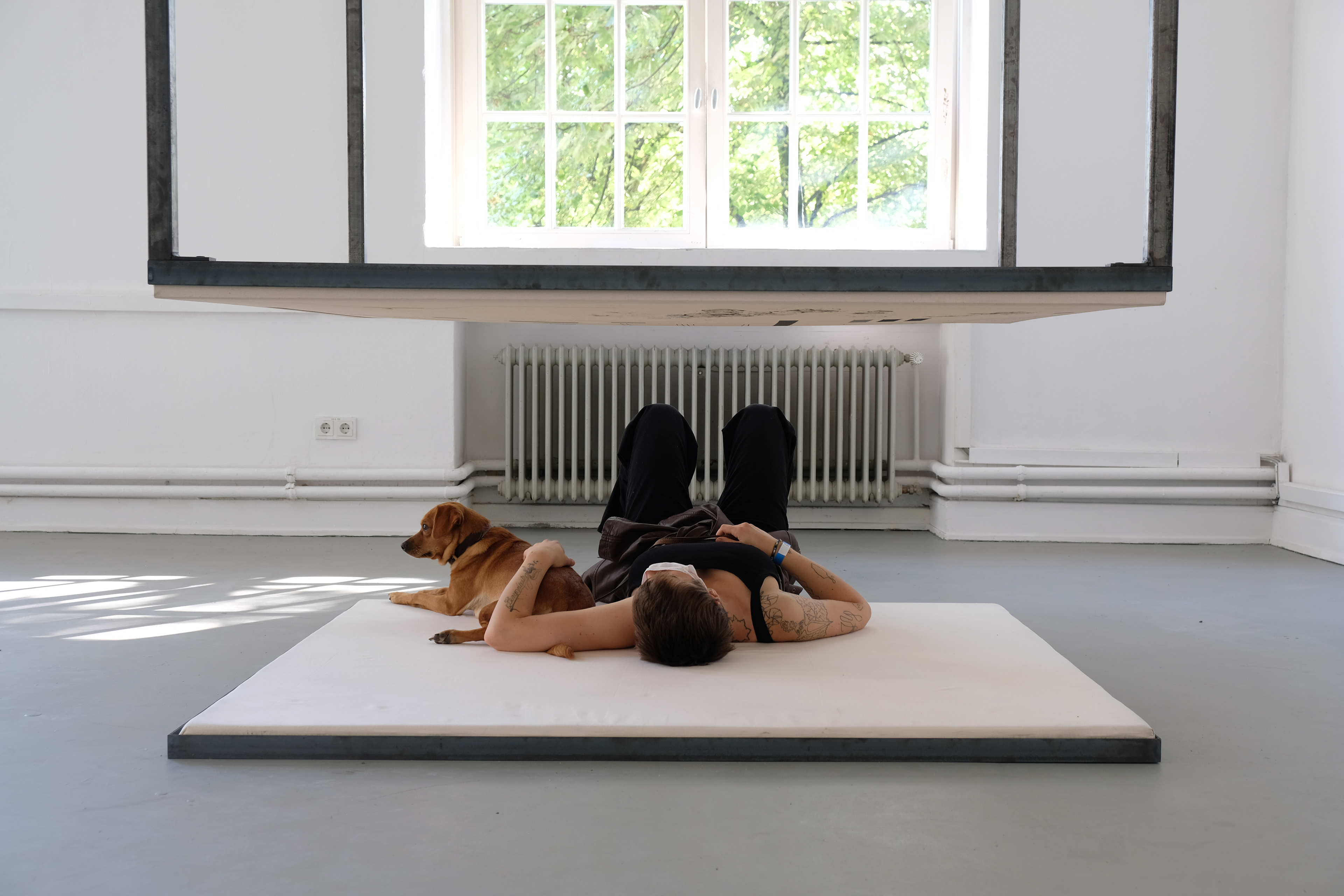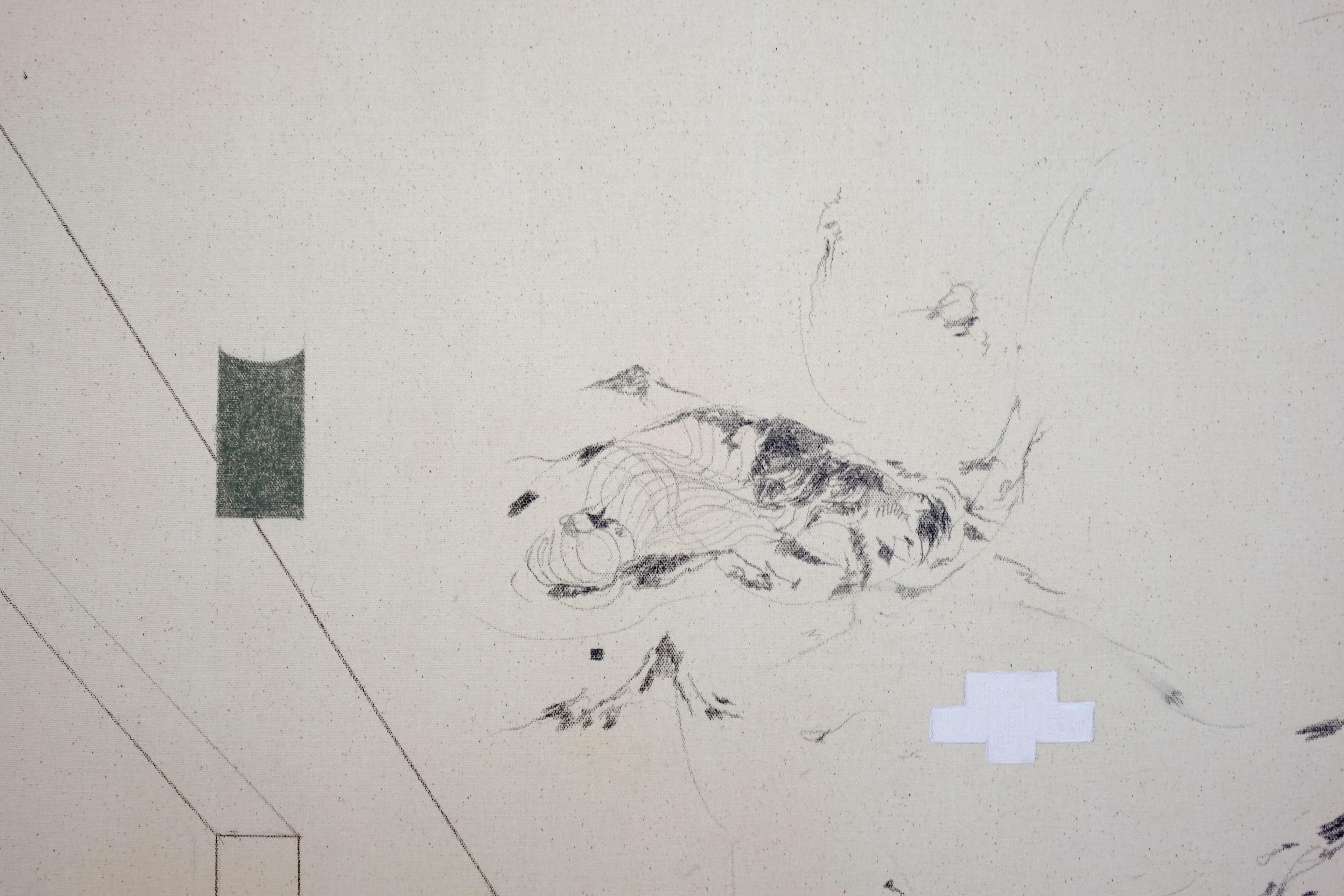 Metal, wood, fabrics, foam, charcoal, coloured pencils, acrylic and plaster